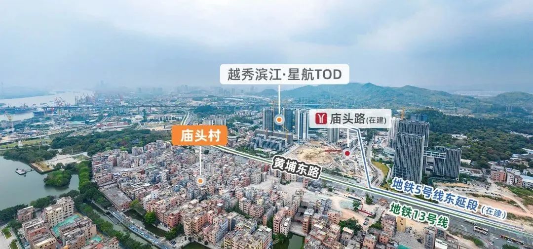 越秀滨江星航TOD,位于广州地铁5号线东延段庙头路站上盖。项目规划了8栋住宅+13栋小洋楼,其中7号楼和8号楼为政府配建房。