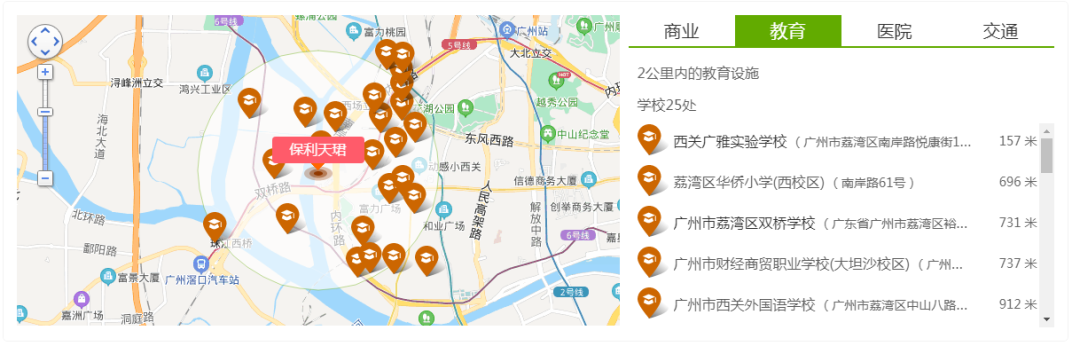 学校:广雅实验学校、华侨小学、培正小学、环翠园小学、广雅中学、市一中、第四中学、南海中学、广州市西关外国语学校 大学商贸*职业技术学校