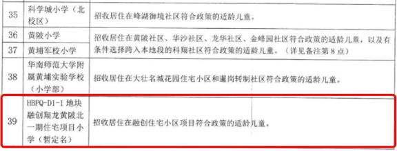 根据今年4月黄埔区公布的招生方案,项目配建的幼儿园和小学都在列表中。(注:后期是否发生变化,均以当年教育局官方发布信息为准)