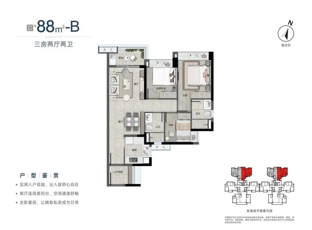 销售给楼市君算了笔账,以88平的三房户型为例,按目前约2.7万/平的价格计算,总价大概在243万左右。