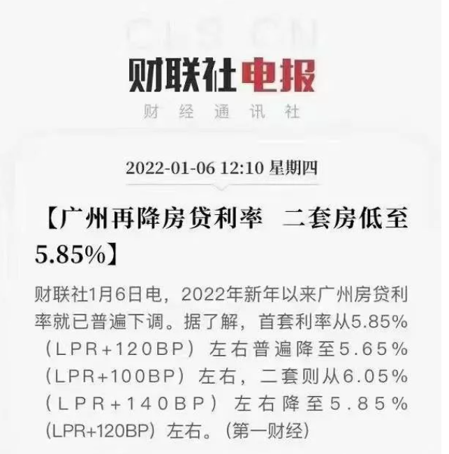这不,2022年的钟声刚刚响过,广州房贷利率就已普遍下调,*套利率从5.85%(LPR+120BP)左右普遍降*5.65%(LPR+100BP)左右,二套则从6.05%(LPR+140BP)左右降*5.85%(LPR+120BP)左右。