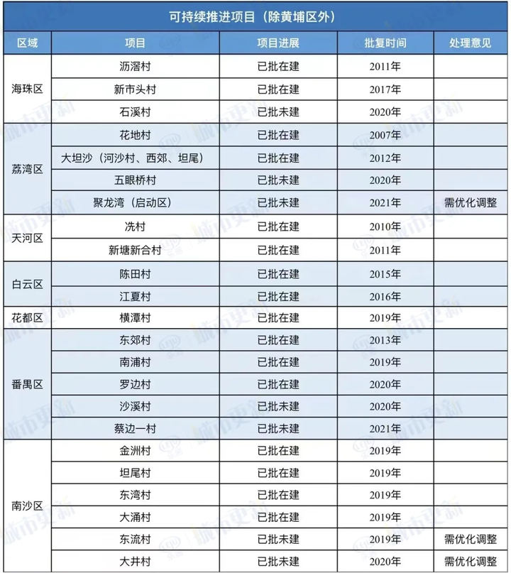 根据近日流传的《关于全市城市更新项目核查工作情况的报告》,白云仅有陈田村、江夏村(非旧改项目)能继续推进。