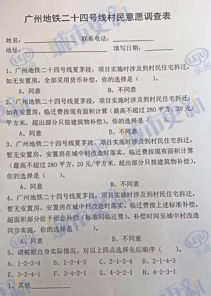 从表格的问题设计来看,并没有对是否支持地铁24号线开建设问,所有问题均围绕补偿问题。