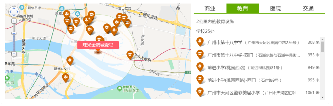 学校:广州市第十八中学、天河明珠中英文学校、天河区盈彩美居小学、前进小学;