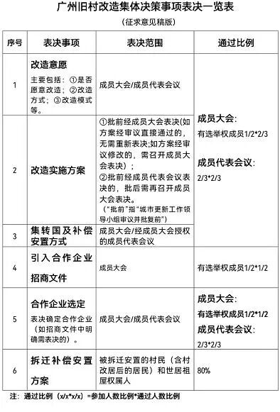 2022年1月5日,广州市住房和城乡建设局发出《关于征求<广州市旧村改造村集体经济组织决策事项表决指引>(征求意见稿)意见的函》(下称《征求意见稿》)。