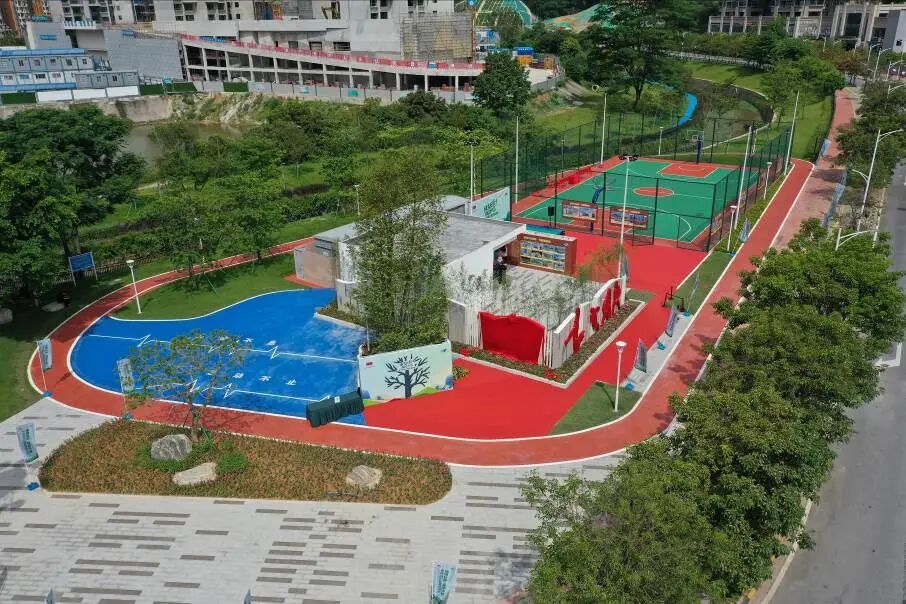 运动公园位于黄埔区永顺大道沿线南侧,面积约3700平方米。除了新建篮球场、羽毛球场,运动公园还因地制宜设置排水沟、园路灯、球场灯等配套设施外;后期增加了公厕、体育运动器材,并根据居民诉求,适当改建绿化、硬底化的设施。