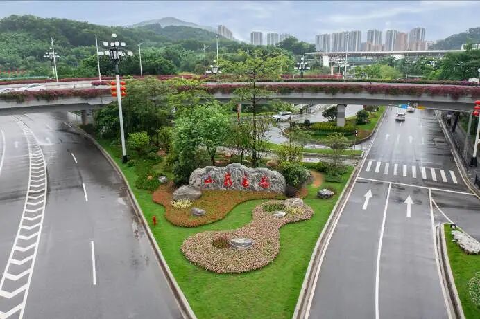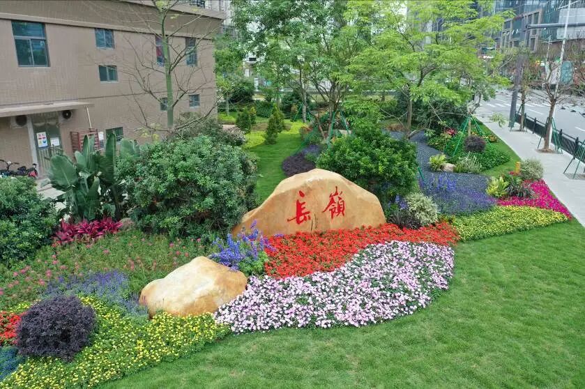 “长岭之门”街心花园位于黄埔区永顺大道、广汕路与萝平路交叉口,整体面积约1000平方米。为塑造长岭整体形象,花园将根据不同季节定期更换时花,并打造多种造型。花园内增加“山水长岭”景观石,突出长岭山水的特点。