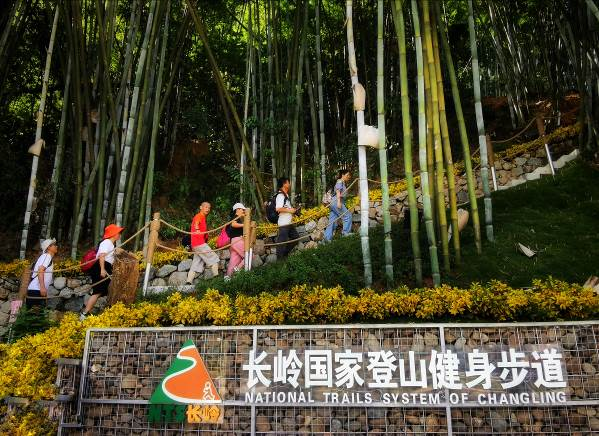 项目进展:长岭国家登山健身步道一期64.3公里全线基本贯通(涵盖不同徒步时长、难度各异的环线十余条),已完成黄麻、岭头主入口及岭头茶园环线建设并向公众开放。