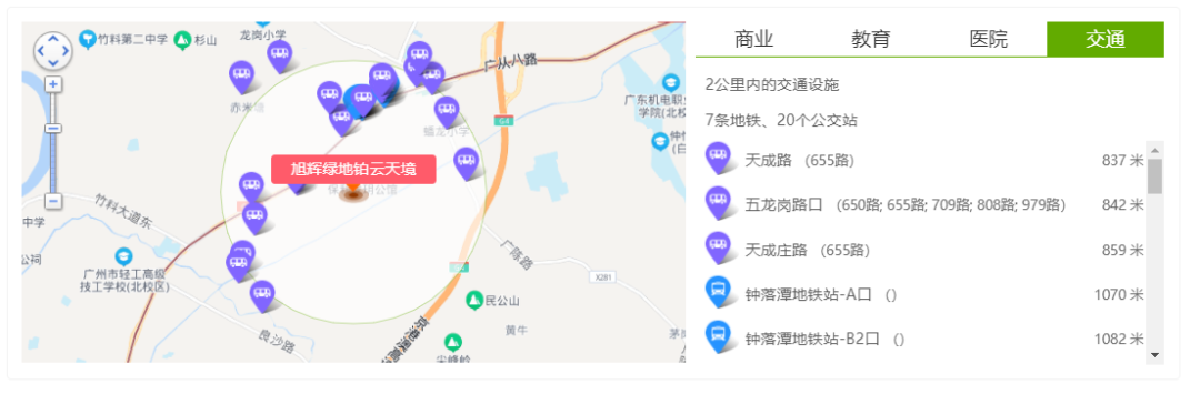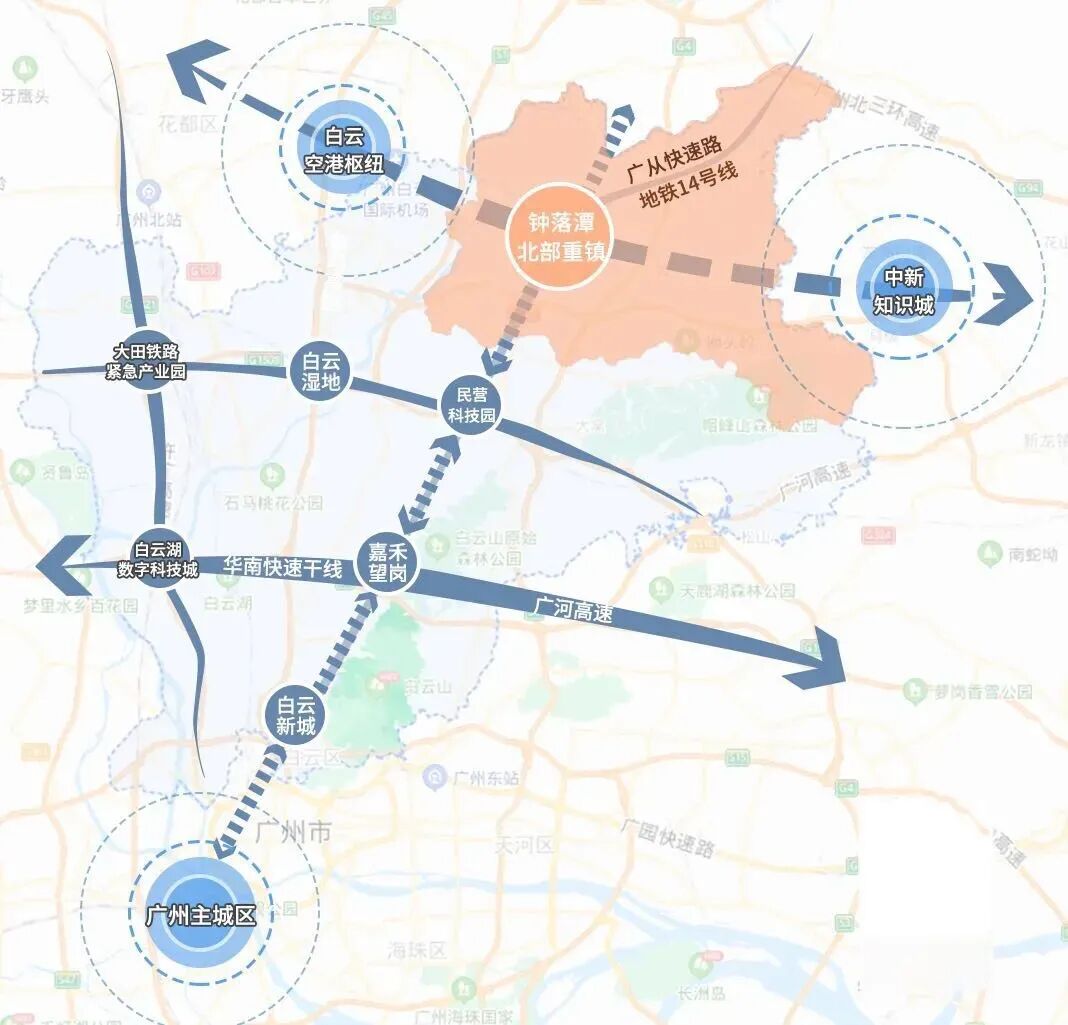 交通:立体交通网,*,享有3横4纵高速的立体交通网 1条地铁(14号线钟落潭站直线距离约850米)主脉,2城轨(新白广城际【建设中】、广佛环线北段)瞬连湾区。