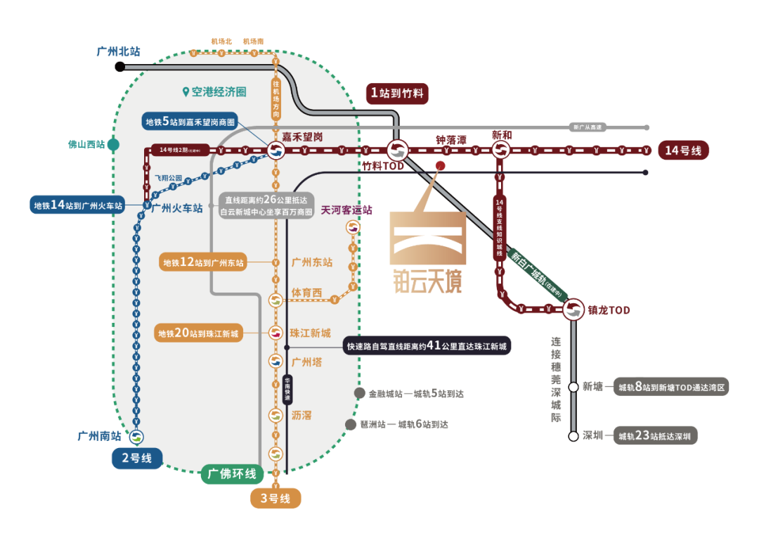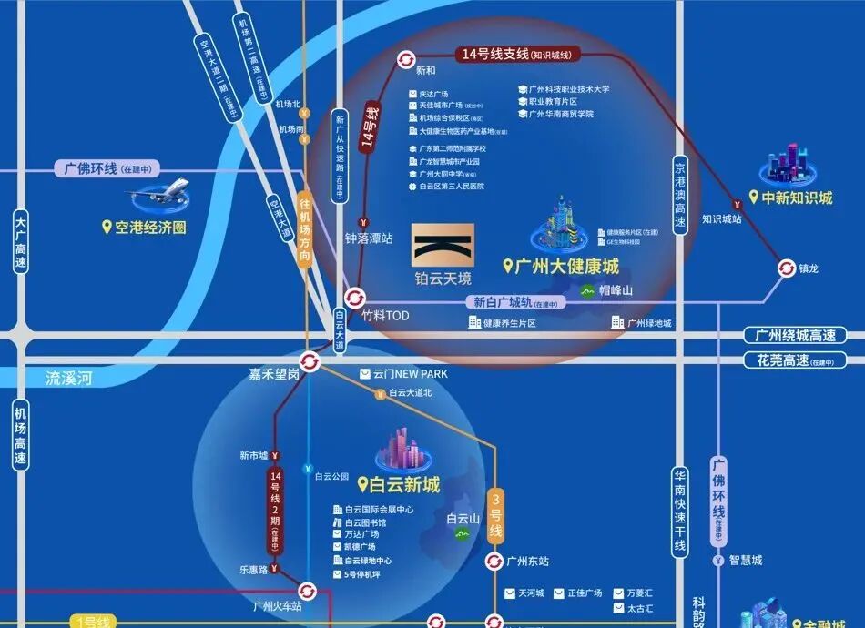 三级便捷圈:直线距离约23.9km,直达白云新城商圈,凯德广场、万达广场满足全方位需求。