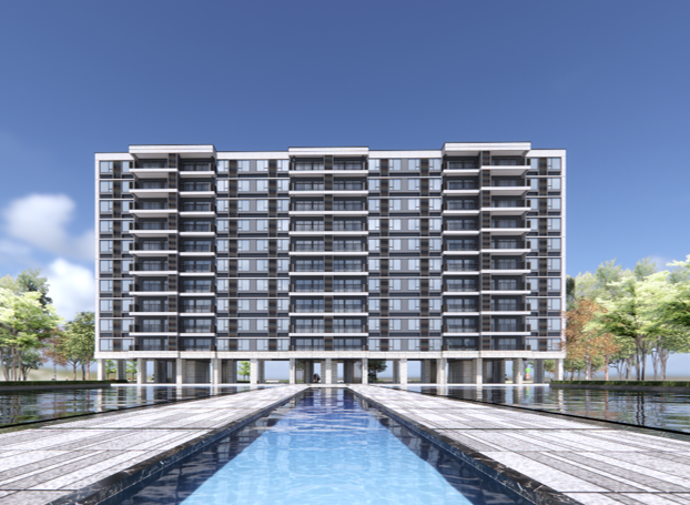 从效果图可以看到,所有楼栋向阳一字排列,包括5栋高层建筑、13栋11层的低密小高层。