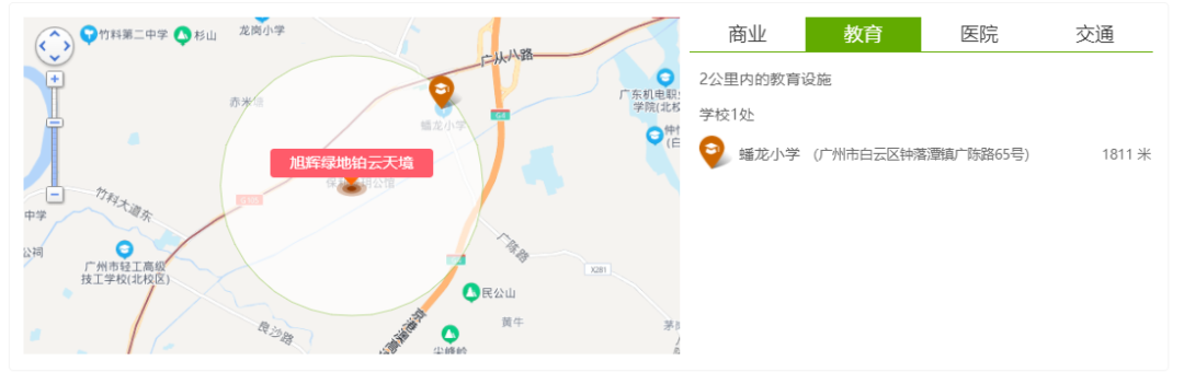 医疗:医院周边医疗资源完善,直线距离约5.1km到达白云区第三人民医院,直线距离约11km到达广州中医药大学*附属医院白云医院等优质医疗护航健康;区域内规划建设两个。