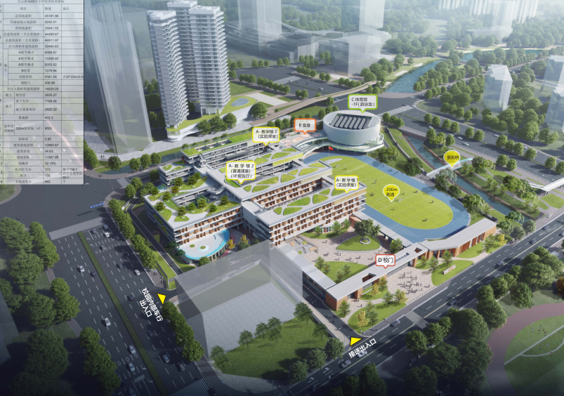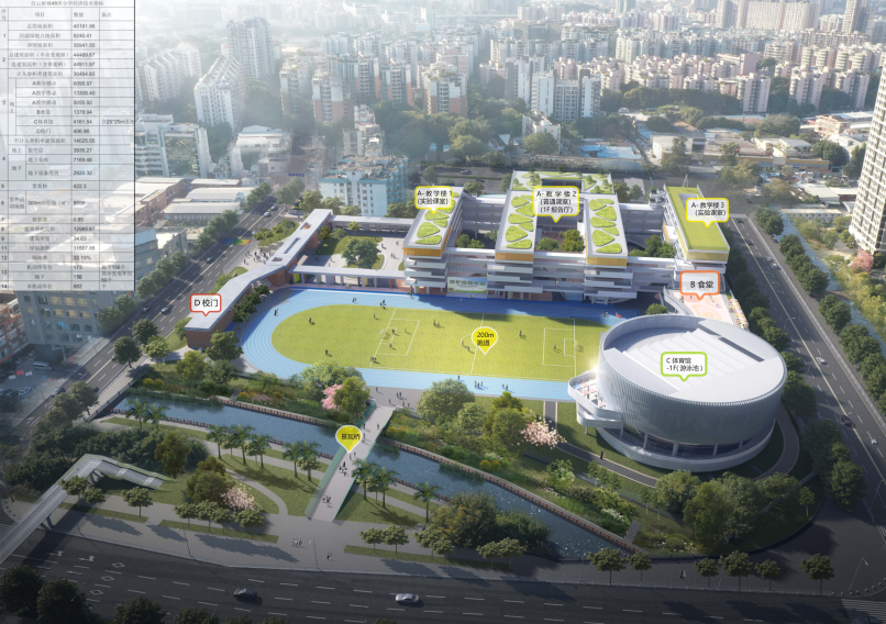 位于云城街道白云新城*区地铁萧岗站西侧,龙湖天奕小区南侧。该项目规划为白云新城省实小学部,规划48班小学,总用地面积约45182平方米,总建筑面积约44490平方米。建设内容包括教学楼(办公、教学)、报告厅、食堂、体育馆、辅助用房、风雨连廊、运动场地和人行景观桥等,项目总投资为48438.2万元。