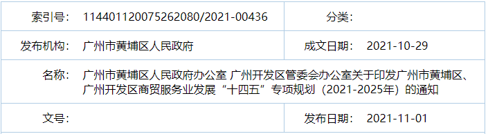 2021年11月1日,黄埔区印发《广州市黄埔区、广州开发区商贸服务业发展“十四五”专项规划(2021-2025年)》。