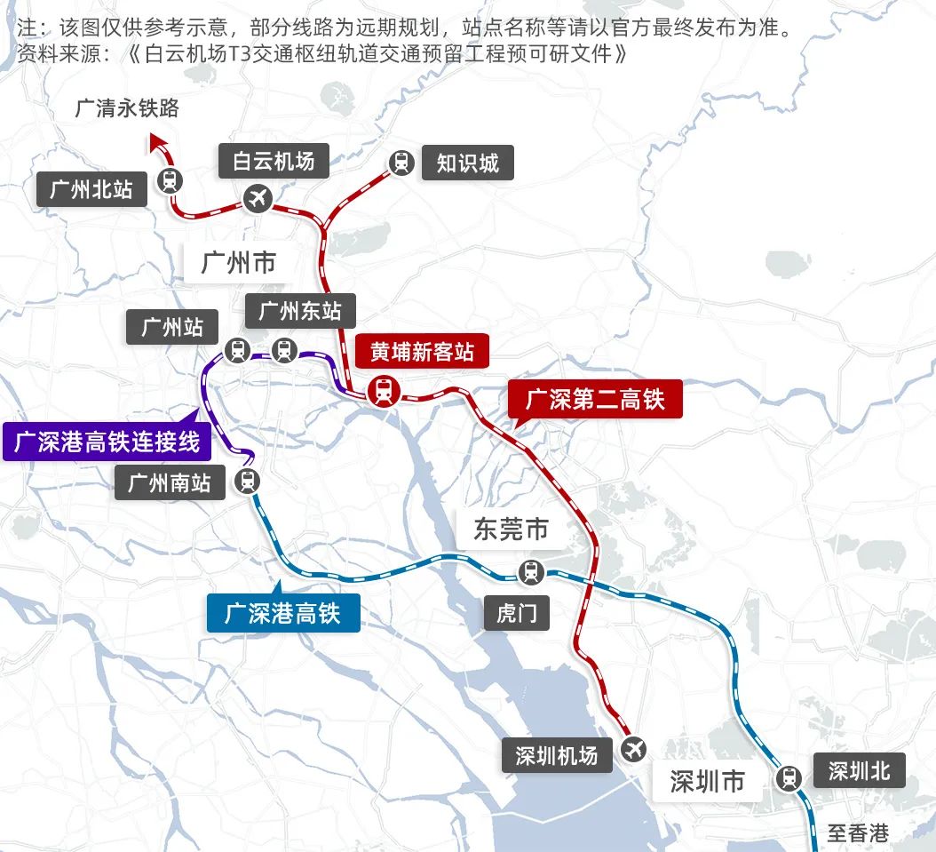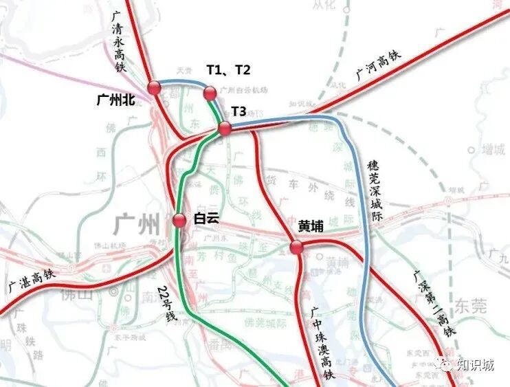 新白广城际铁路,通车后从广州北站到白云机场仅需7*。从知识城*白云机场10*可达,从新塘*白云机场20*可达,白云机场*深圳机场也仅需40*。