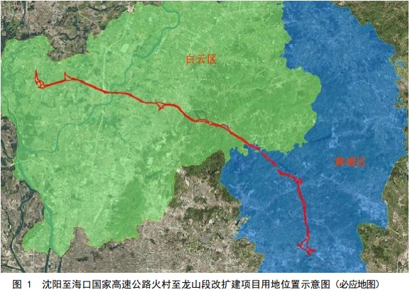 沈阳*海口国家高速公路火村*龙山段改扩建项目用地在白云区段示意图