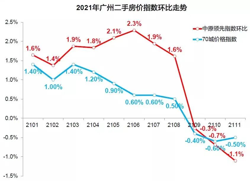 据中原*指数环比显示,广州二手房指导价出台后,楼市回归理性,价格进入下行通道。且现今信贷和政策环境并没有收紧迹象,故而2022年的价格走势恐怕还要持续一段时间的低迷状态。