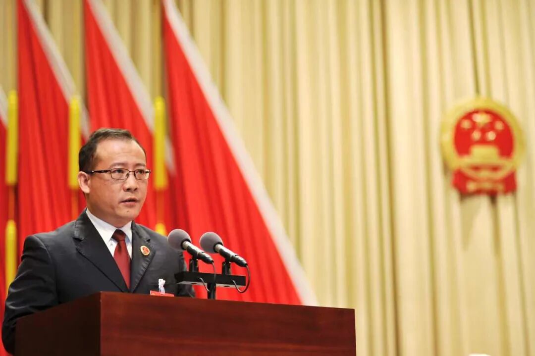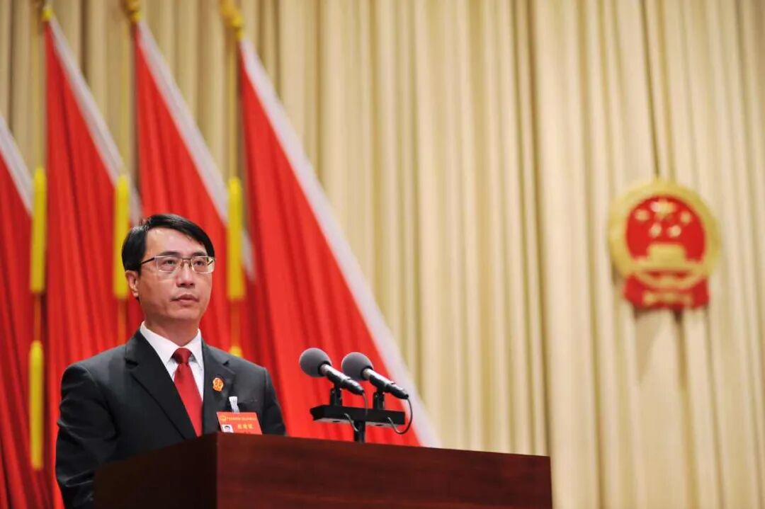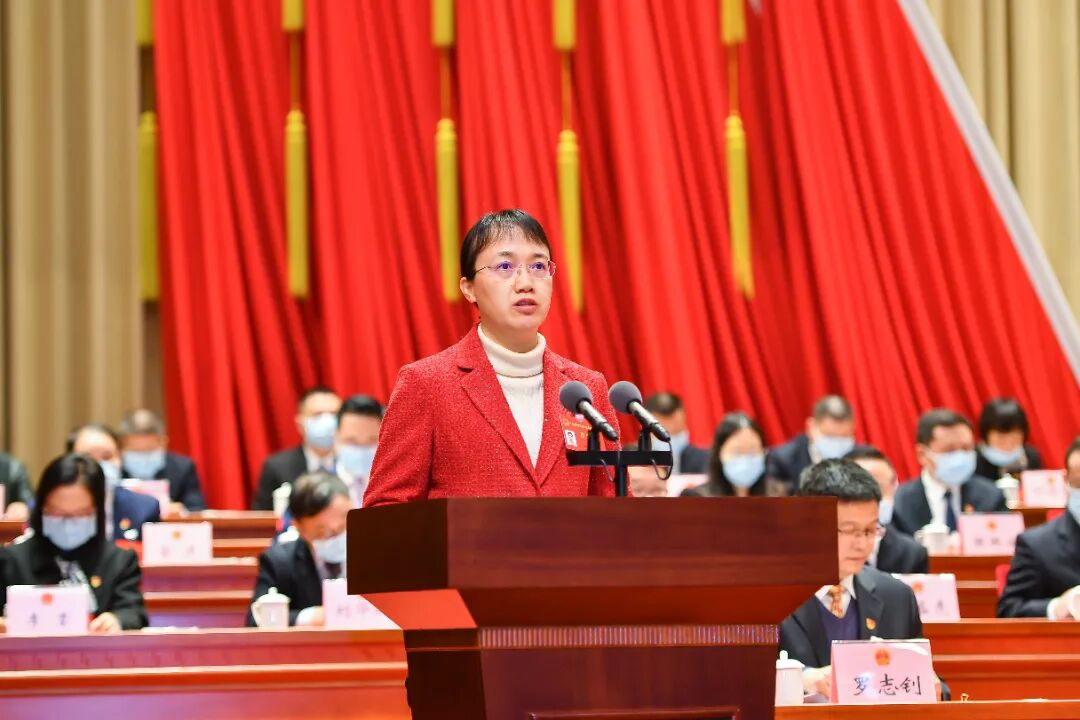 △ 黄埔区区长冼银崧向大会作政府工作报告