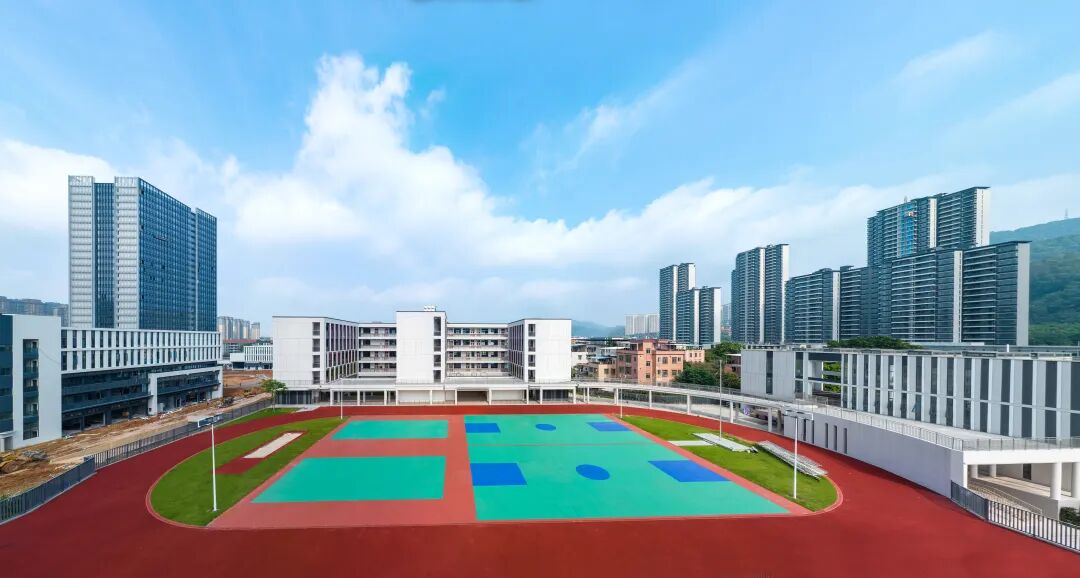 目前,小学已经建设完毕,立面新净的教学楼、环形跑道、篮球场、羽毛球场、阳光泳池等都是高标准打造,静待学生入校。