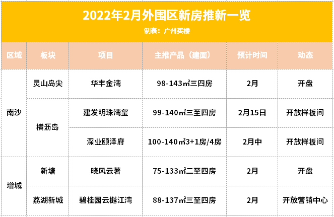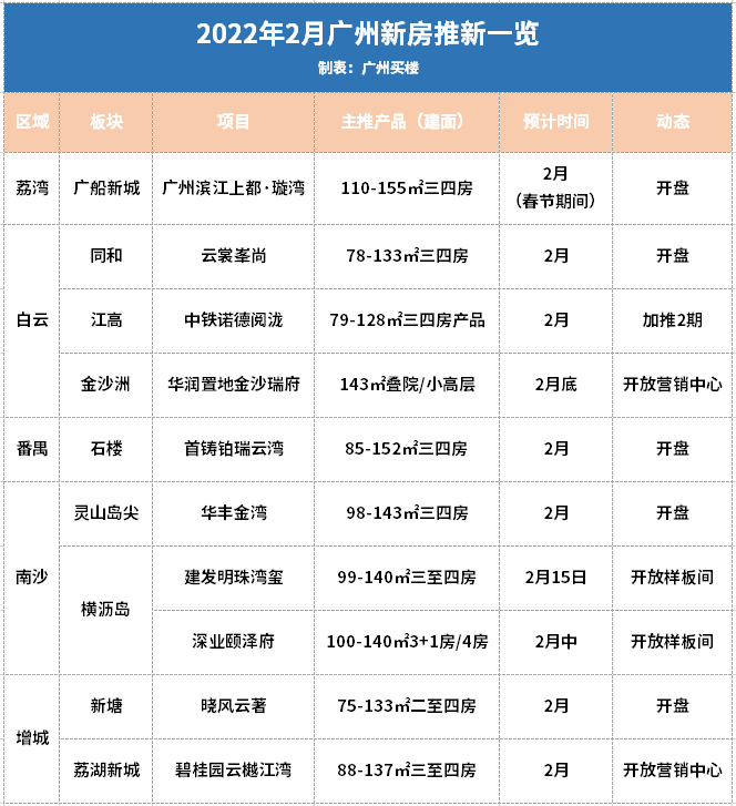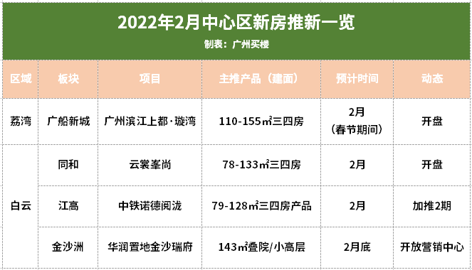 据买楼君截*1月26日的不完全统计,今年2月,广州预计10盘在“春节档”有推新动作。