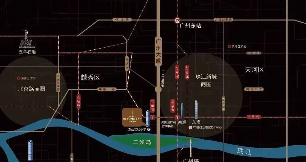 世茂天樾矗立于广州大道中,占据广州高净值人群荟聚的黄金三角-百年东山—珠江新城—二沙岛,不仅是广州交通*、商圈环绕*、优质教育*,更是城市CBD中难得拥有广阔江景的东山*,拥“对望小蛮腰,比肩东西塔”之势。