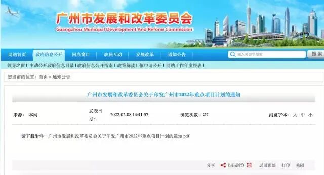 2月8日,广州市发展和改革委员会在官网正式公布广州市2022年*项目计划,再次暴露了广州的雄心勃勃。