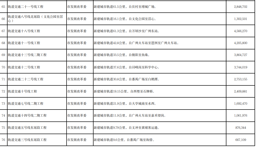 另外,广州在建11条地铁线路+黄埔有轨电车2号线纷纷进入今年*建设项目。