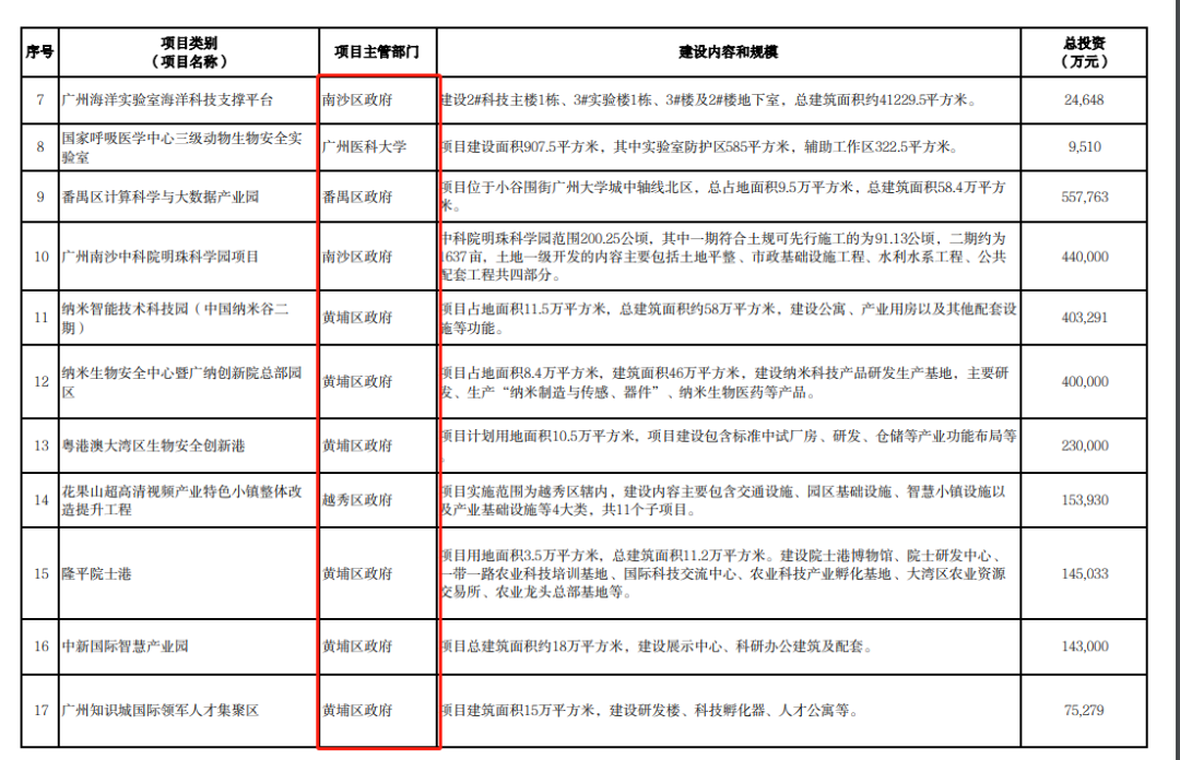 其中,仅由黄埔区政府主管的项目就多达到78个,由南沙政府主管的项目达60+。