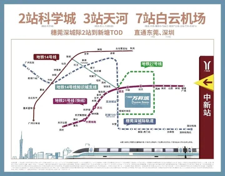 不仅如此,为打造广州东部门户枢纽,三大火车站选址落入增城之手,分别是新塘站、增城站、增城西站综合交通枢纽。