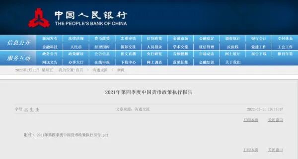2月11日,人民银行发布的《2021年第四季度中国货币政策执行报告》(下称《报告》)显示,下阶段,稳健的货币政策要灵活适度,加大跨周期调节力度,发挥好货币政策工具的总量和结构双重功能,注重充足发力、精准发力、靠前发力,既不搞“大水漫灌”,又满足实体经济合理有效融资需求。