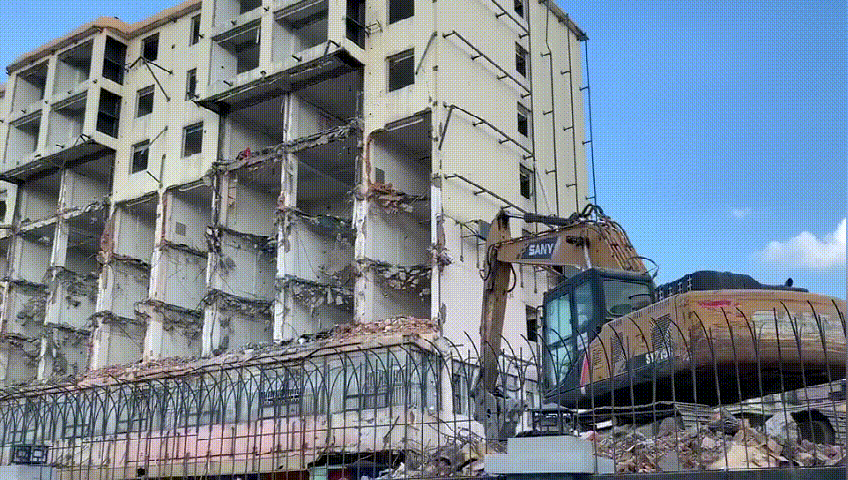 2021年5月底,从路边经过,看到拆迁机器在作业!
