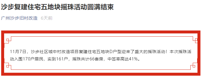 文中写到:为响应广大村民早日回迁的诉求,保障各方利益,故此沙步广裕实业和沙步股份经联社约谈留守户协商房屋的拆补协议签约事宜。