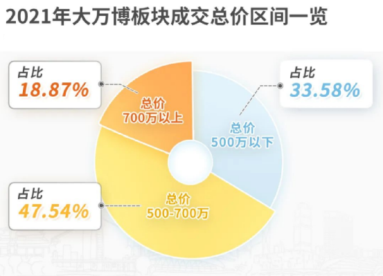 中指院显示,2021年,总价超500万+的住宅已是万博的成交主流,占比超66%,其中,超700万+以上的住宅占比更达到了18%,爆发力惊人。