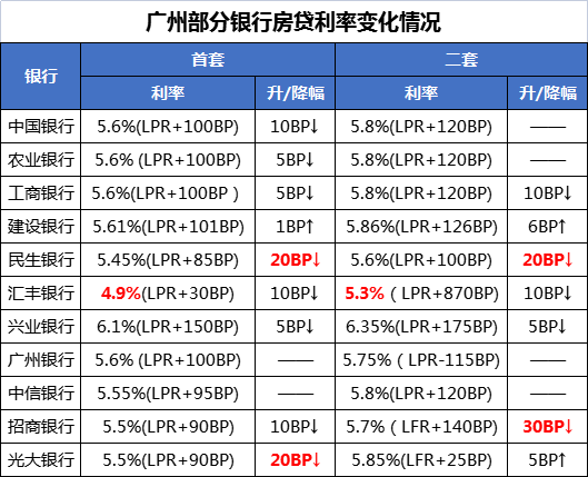 中国银行、民生银行、汇丰银行、招商银行、光大银行等房贷利率已经较过往有10BP或以上幅度下降。其中,民生银行的*套房利率更是下降*4.90%。