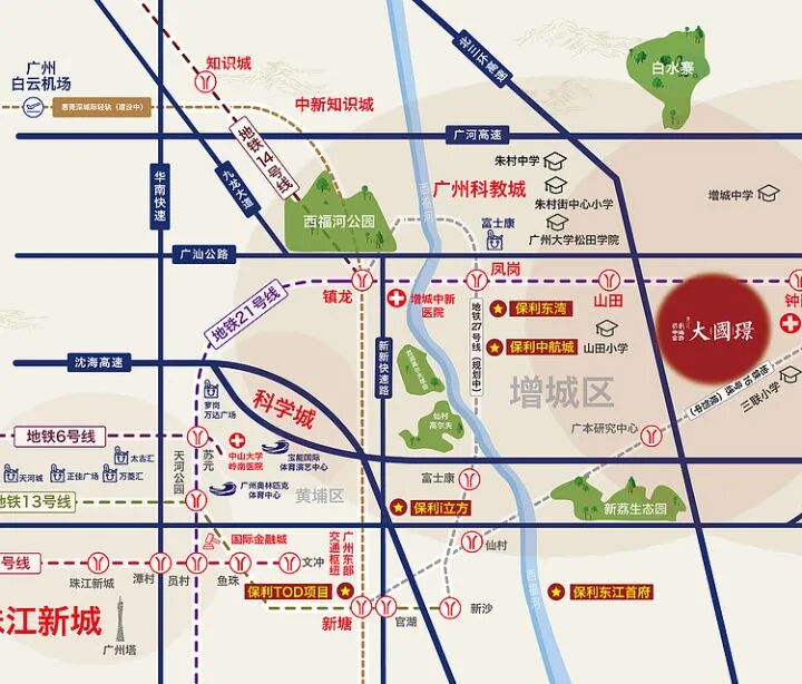 交通:地铁21号线、逸翠庄园公交站、广州正果国际机场