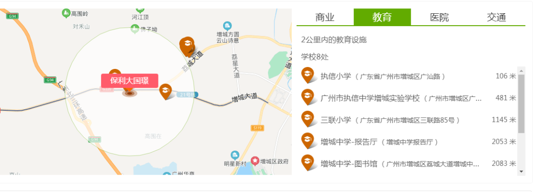 学校:清燕小学、三联小学、增城区试验小学、山田小学、南岗小学中学(公办):荔城街第三中学、增城中学、朱村中学、广州大学松田学院、广州华商职业学院