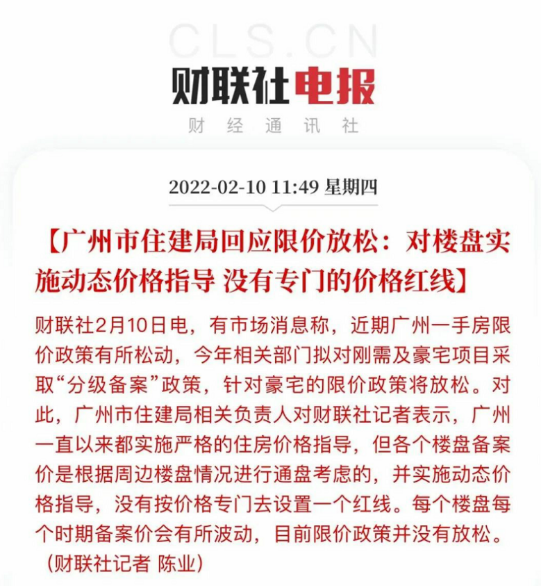 近期限价情况似乎有所松动,广州市区多盘备案价达到14万/m2以上;广州住建局官方表示,广州一直以来严格实行住房价格指导,实施动态监管,以支持商品房市场更好满足购房者的合理住房需求,促进房地产业良性循环和健康发展。
