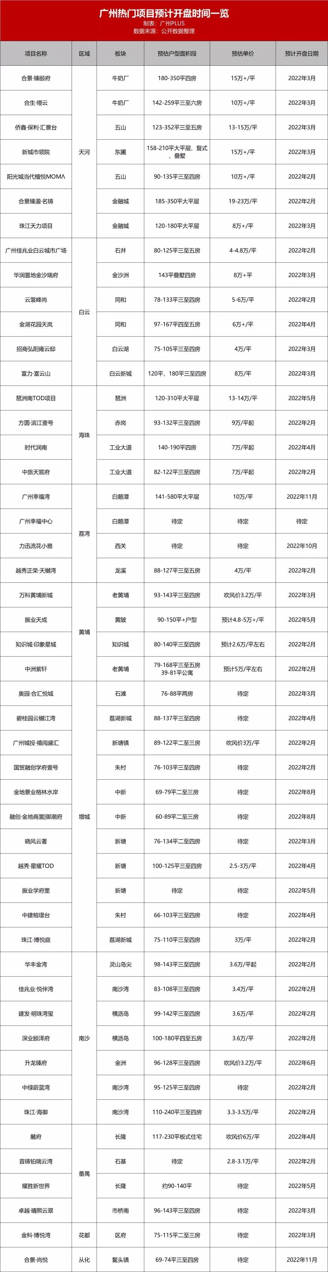 我们也不负众望,拿到了广州各大热门新盘的预估面市时间!