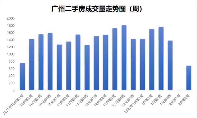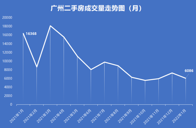 我们先来看一组数据,据贝壳研究院广州分院整理,2022年1月,广州市二手网签量约为6086宗,环比2021年12月同期(7275宗)下降了16.34%。这个成交量放在2021年1月的16000多套前面,显得十分“弱小”。