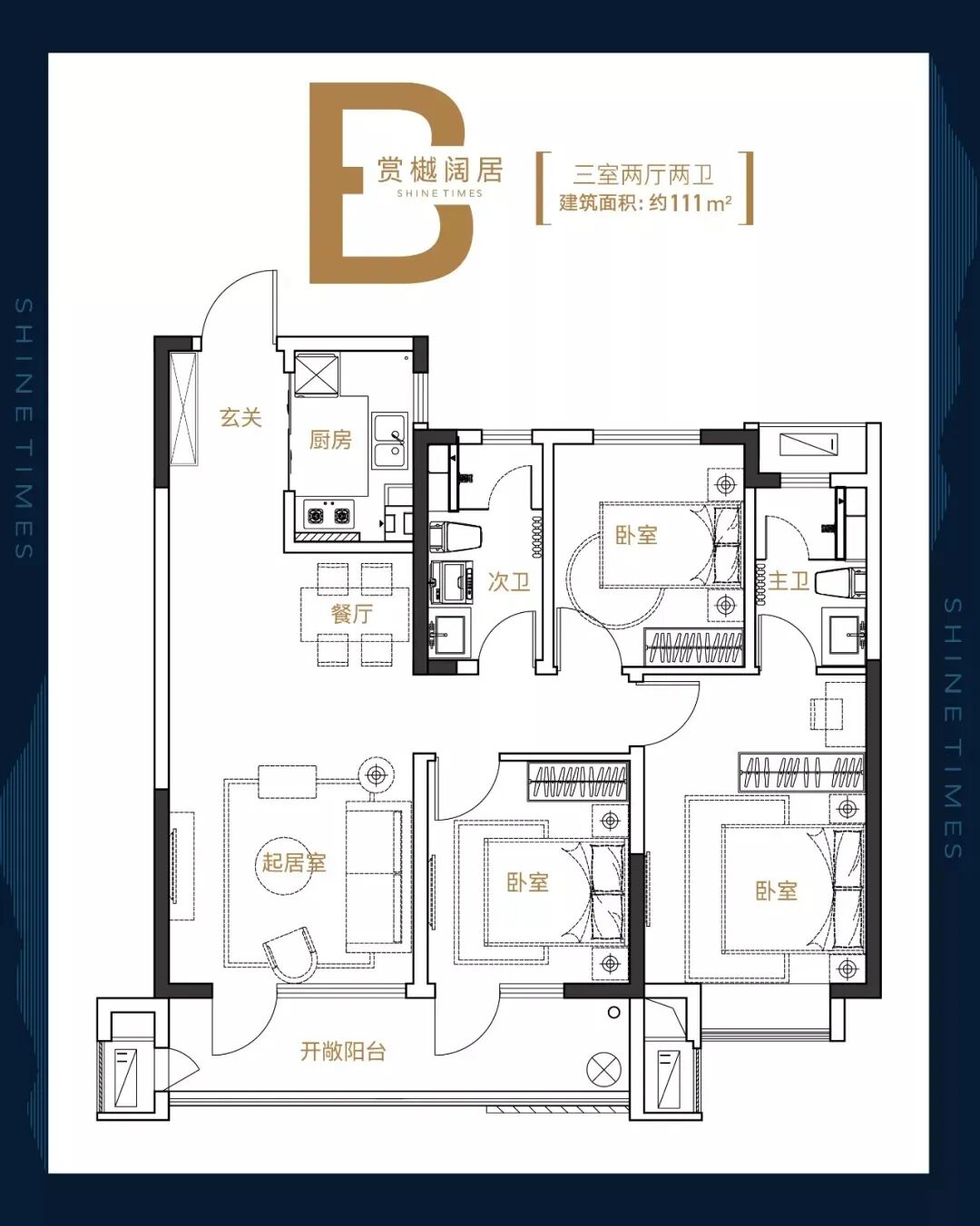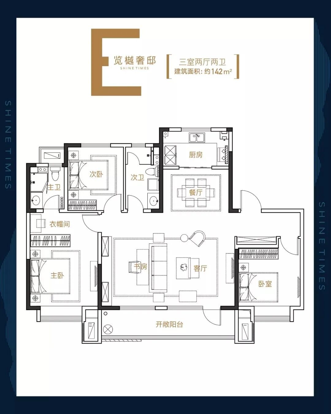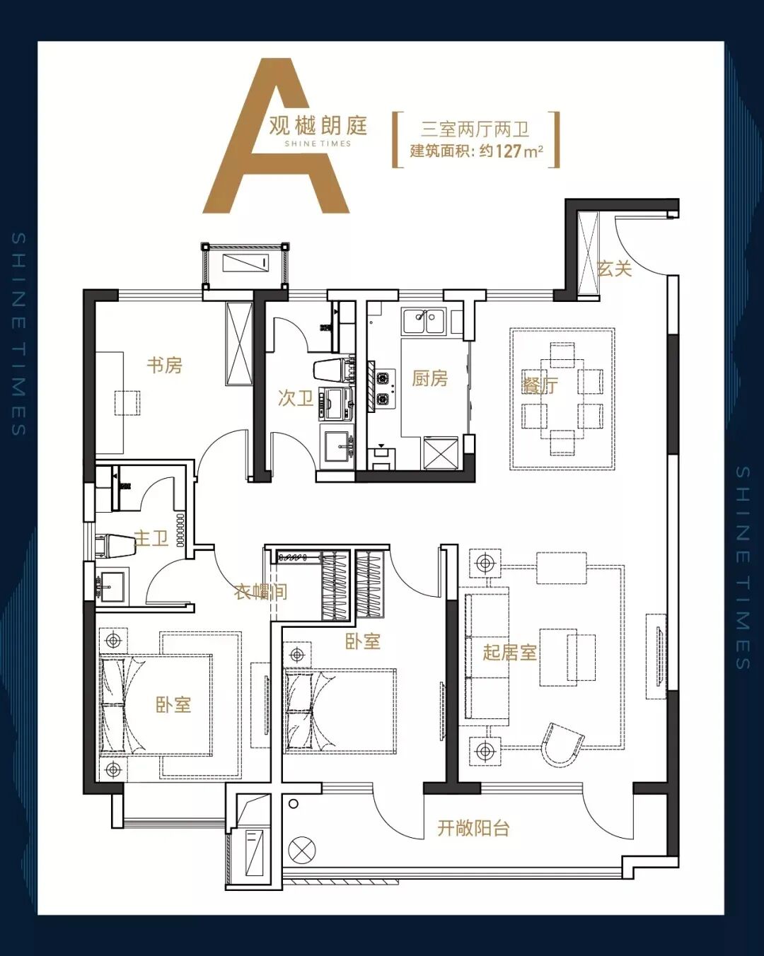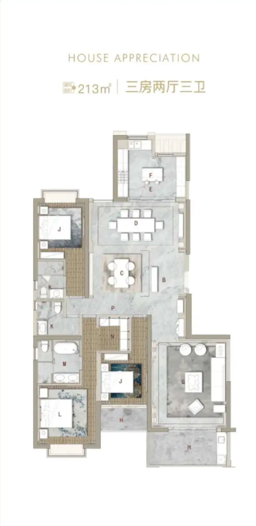 此次户型为大户型,瞰河大宅,直面千年运河盛景、视野无所阻隔。建筑面积约139㎡大宅三开间全朝南,面宽约13.55米,尺度媲美别墅。
