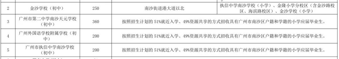 南沙区近几年优质教育资源的引进,吸引了不少家长的目光。“南沙七校”(南沙华附、广外附校、二中天元、广附南实、湾区实验、滨海实验,执信南沙)的陆续启用改写了整个南沙的教育格局。目前南沙有7所合作办学的学校有初中部,七校初中的招生是要求具有南沙户籍和南沙学籍的小六毕业生才可报名,招生计划的51%就近入学+49%全区资源共享的方式入学,该方式构成了全区相对公平的教育环境。根据目前南沙区合作办学学校初中的招生方案:报名未被七校初中录取的学生对口直升相应的地段公办初中。