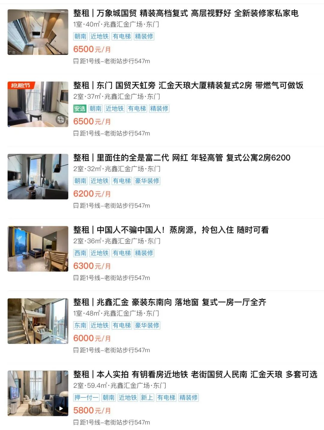兆鑫汇金广场一期项目两房租金情况,图片来源:安居客