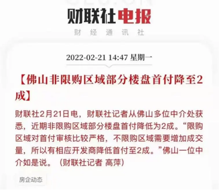 在佛山非限购区域,部分楼盘*付降低为2成,包括高明、三水等地。