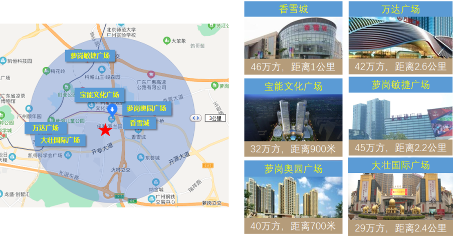 黄金生活圈,人流量大,万达广场,保利华美香雪城(建设中)、萝岗奥园、锐丰广场敏捷广场等等!商业体量超10倍天河城