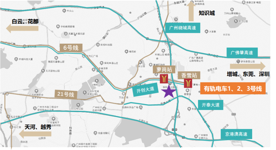 6号线(已开通)【萝岗】【香雪】双地铁站。