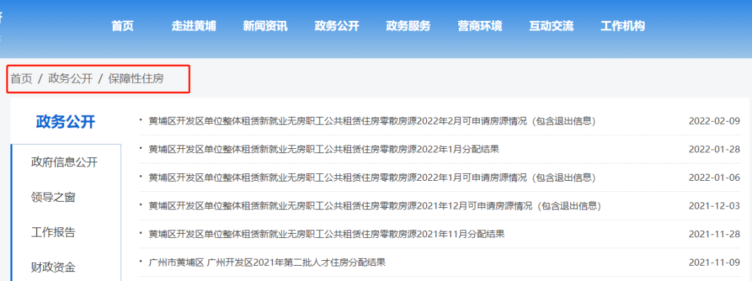 1、黄埔区政府门户网站-政务公开-保障性住房栏目