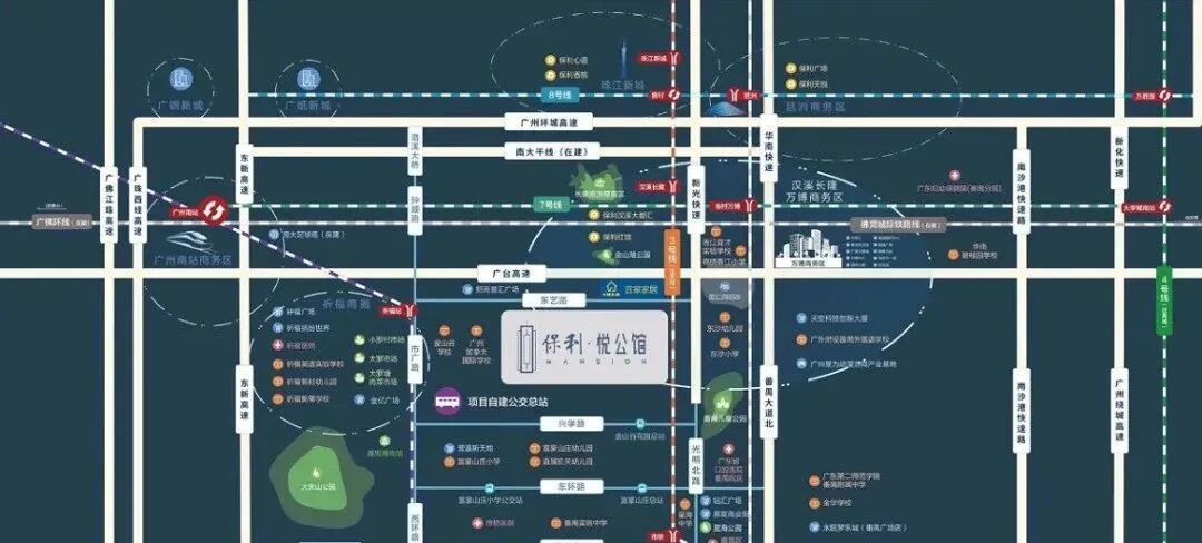周边则有4条地铁线环绕,1站万博、1站南站、6站珠江新城,轻松出行。