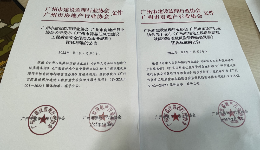 近日(2月25日),《广州市简易低风险建设工程质量安全保险及服务规程》《广州市住宅工程质量潜在缺陷保险质量风险管理服务规程》(以下简称“标准”)正式发布并实施。