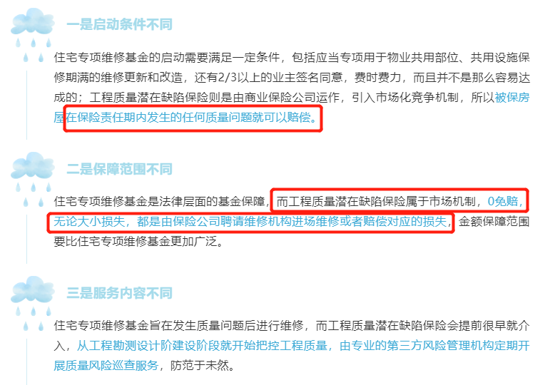 那么,同为维修保障,工程质量潜在缺陷保险与住宅专项维修基金是否重复?