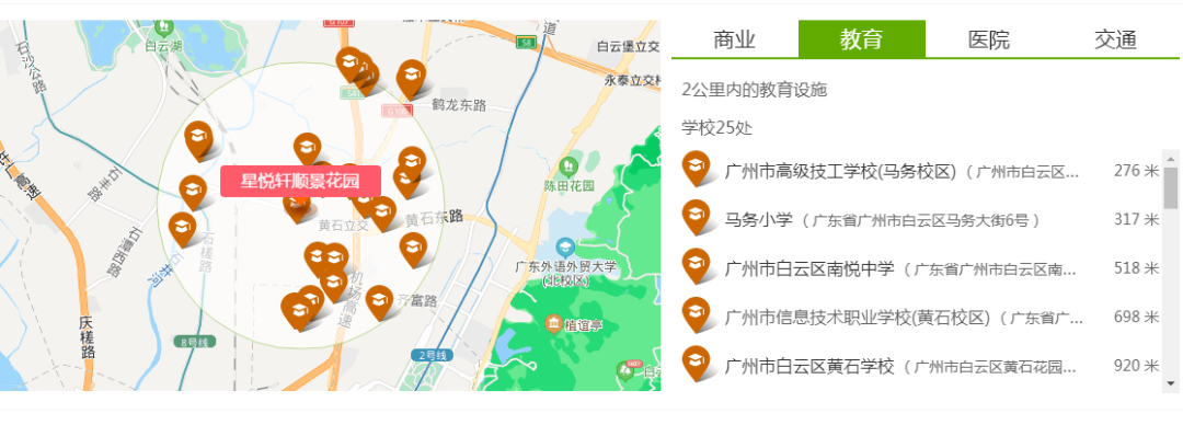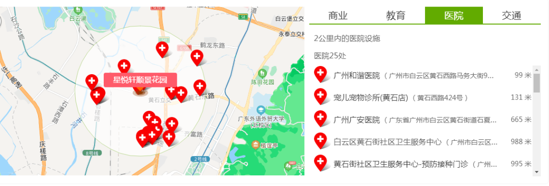 医疗:白云区*人民医院、白云区黄石医院、广州中医药大学*附属医院等